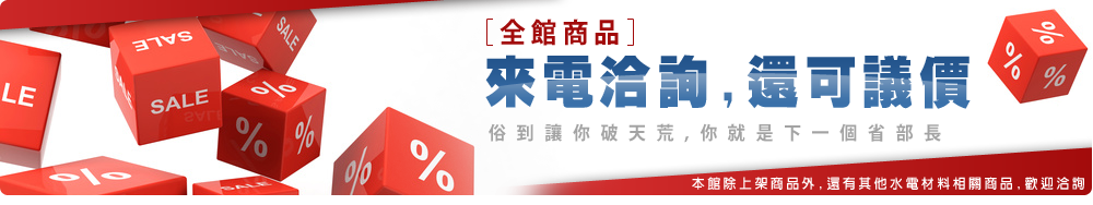 本館購物滿10000以上可享免運費(但不包含瓷器等較重物品,例如馬桶、面盆、壓縮機等), 若有需要,我們將視產品重量各別加收運費300元起,或先來電洽詢,造成不便敬請見諒。